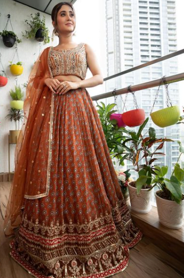 एक्ट्रेस लाइट ओरेंज लहंगे को कैरी करती हुई नजर आई |